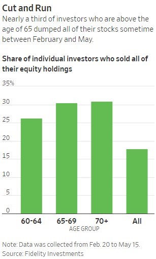 No matter how many times the old adage of ‘buy-low, sell-high’ is repeated, every correction includes a fresh group of investors who capitulate under the stress and sell at the bottom. According to the Wall Street Journal’s analysis of Fidelity Investment trading data, almost 1/5[x] of individuals sold ALL of their stocks between February and May of this year[xi]. Not some of their shares, but ALL of their shares… Sadly, the proportions are even higher for older individuals.